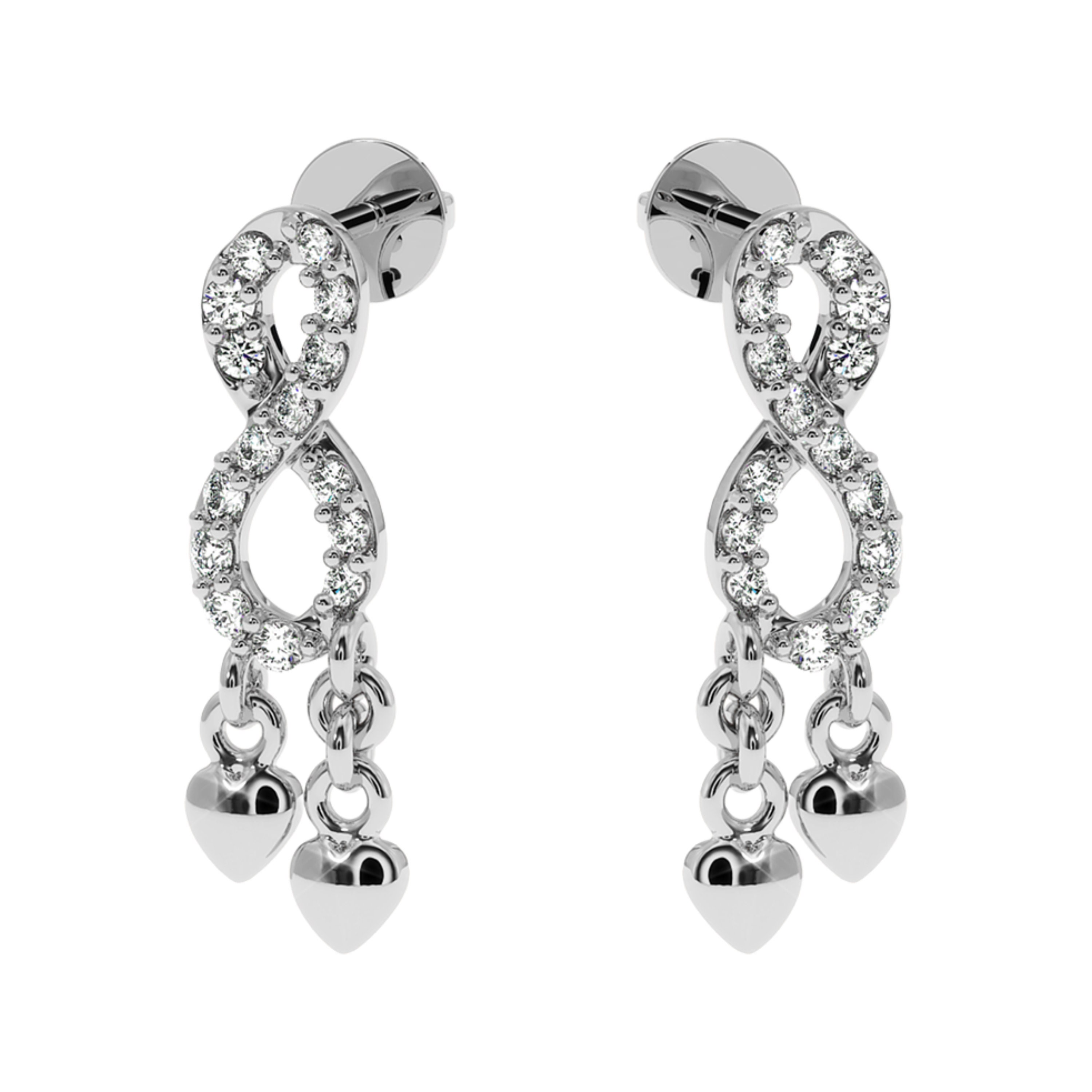 Good for any occasion, these diamond earrings shimmer with sophistication. These infinity heart shaped diamond earrings are best for everyday wear and very light in weight.