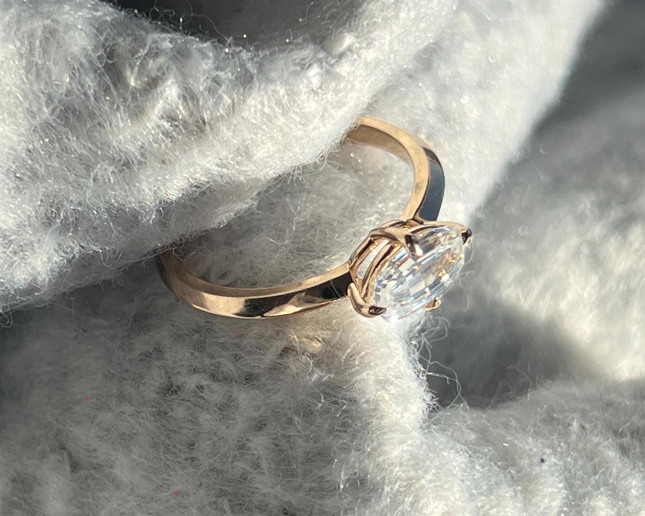This stunning emerald-cut diamond ring is handcrafted in solid gold, designed for those who love clean lines, brilliance, and everyday luxury. The elongated cut enhances sparkle while offering a sophisticated, minimalist look—perfect as an engagement ring, promise ring, or meaningful gift.