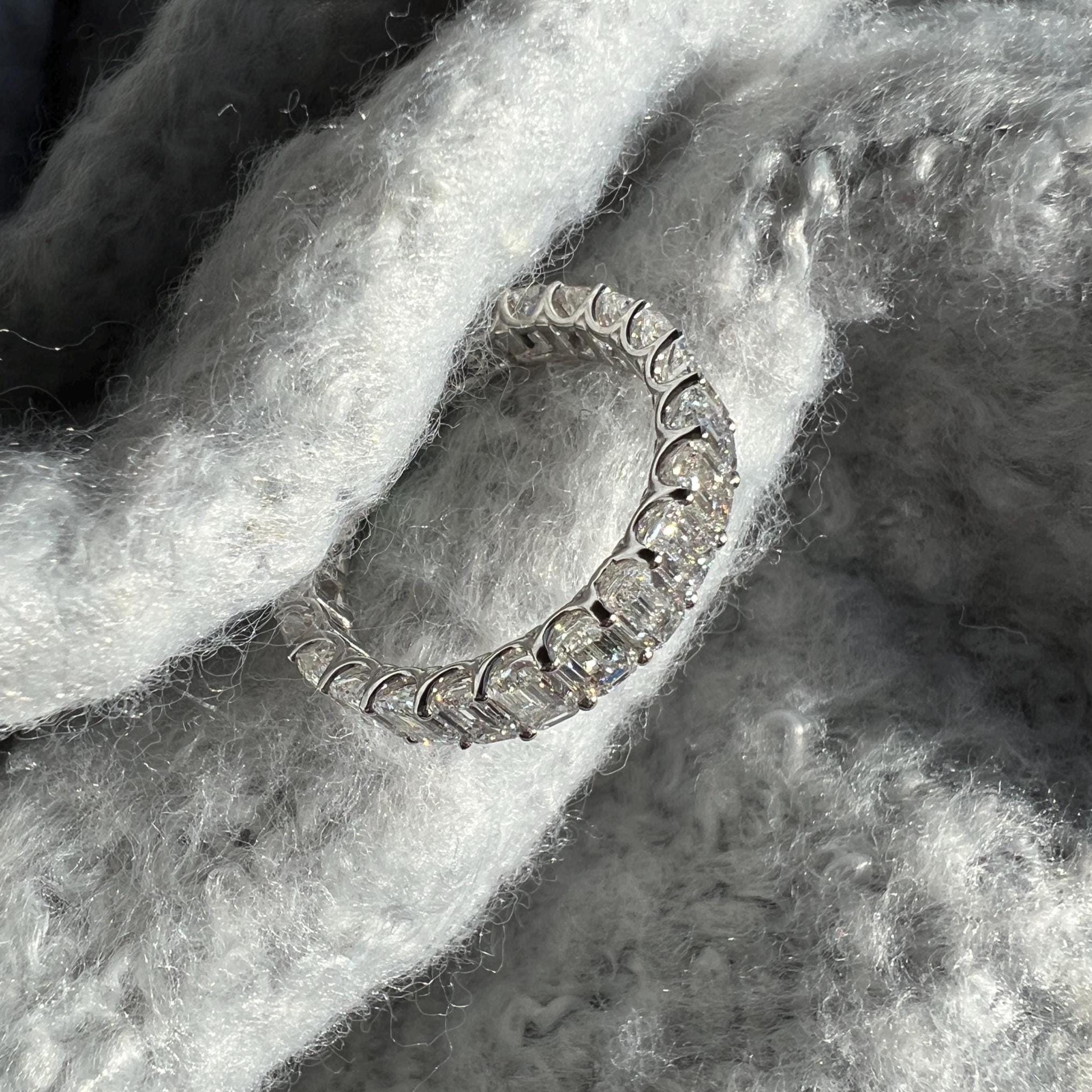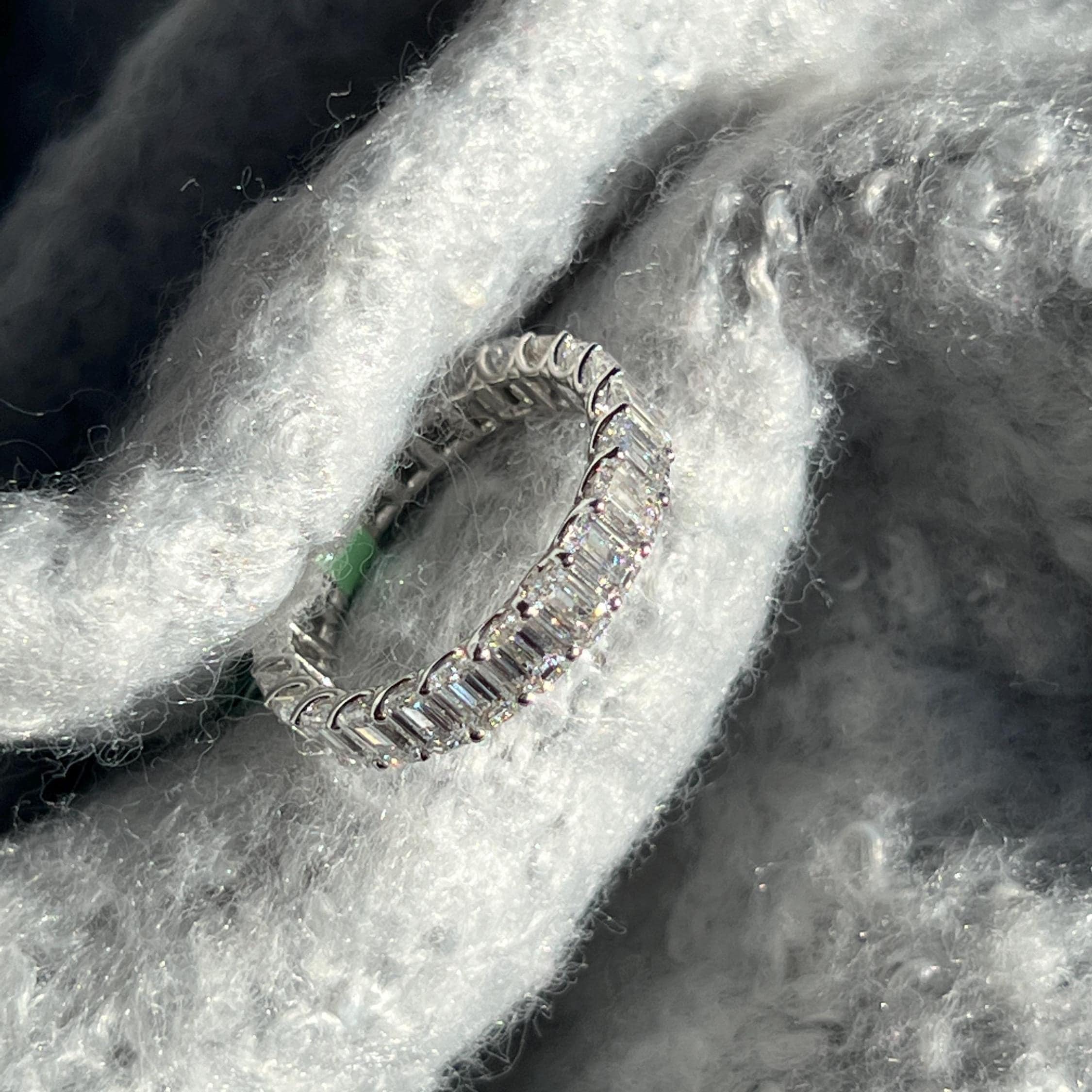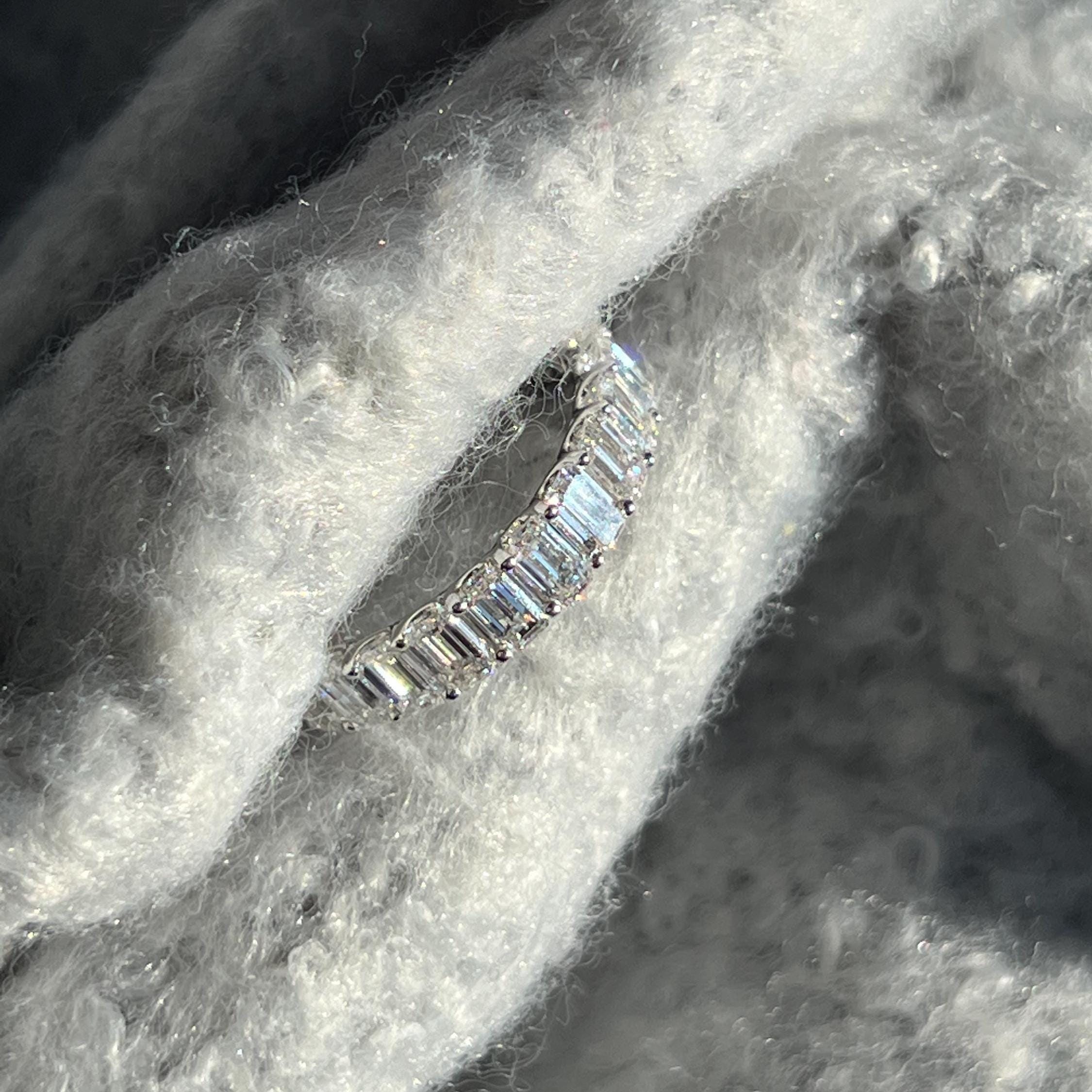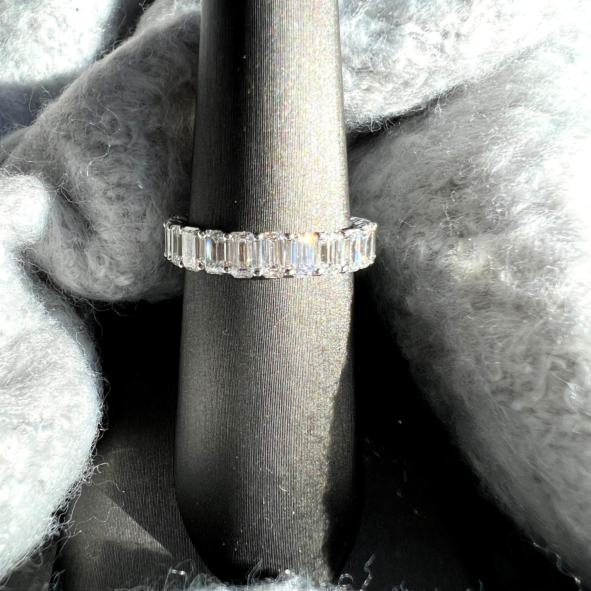 Timeless elegance meets modern brilliance in this diamond ring crafted in solid 14K white gold. Featuring a row of sleek emerald cut lab grown diamonds, this band delivers a refined sparkle with exceptional fire and clarity—perfect for those who love understated luxury.